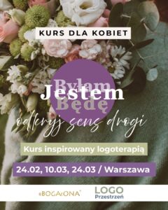 Kurs „Jestem. Byłam. Będę. Odkryj sens drogi” to propozycja dla kobiet, które chcą spojrzeć na swoje życie przez pryzmat logoterapii oraz Słowa Bożego, w bezpiecznej, wspierającej, kobiecej przestrzeni.